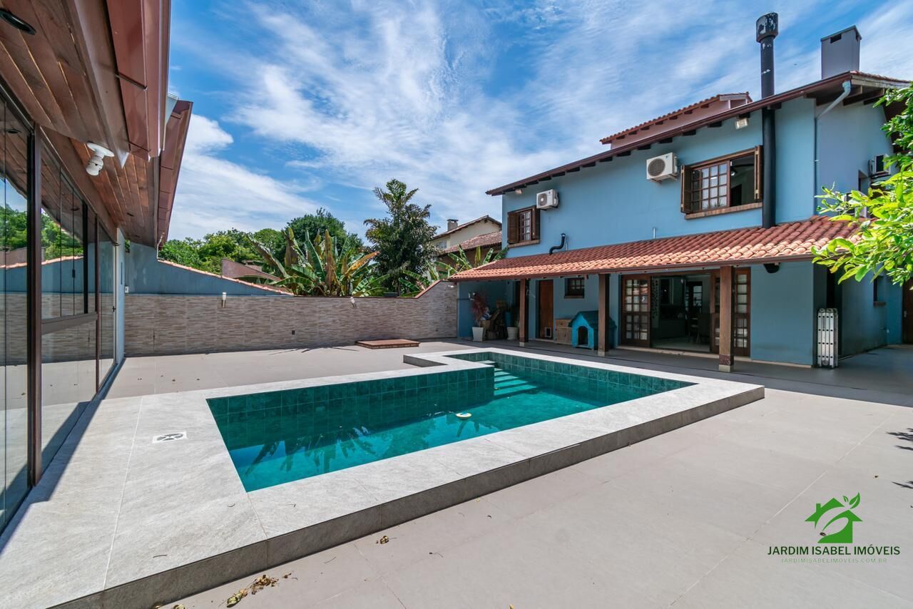 Linda casa de rua no Bairro Jardim Isabel com 4 dormitórios (1 suíte), 4 banheiros e 4 vagas de garagem. Amplo living com lareira, sala de TV, sala de jantar e jardim de inverno, garantindo charme e aconchego.