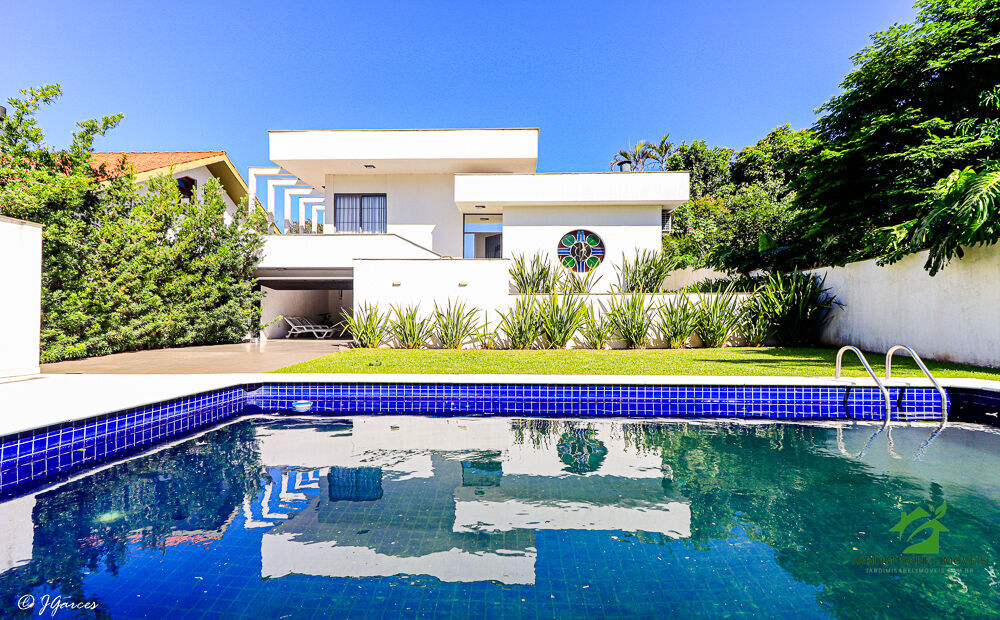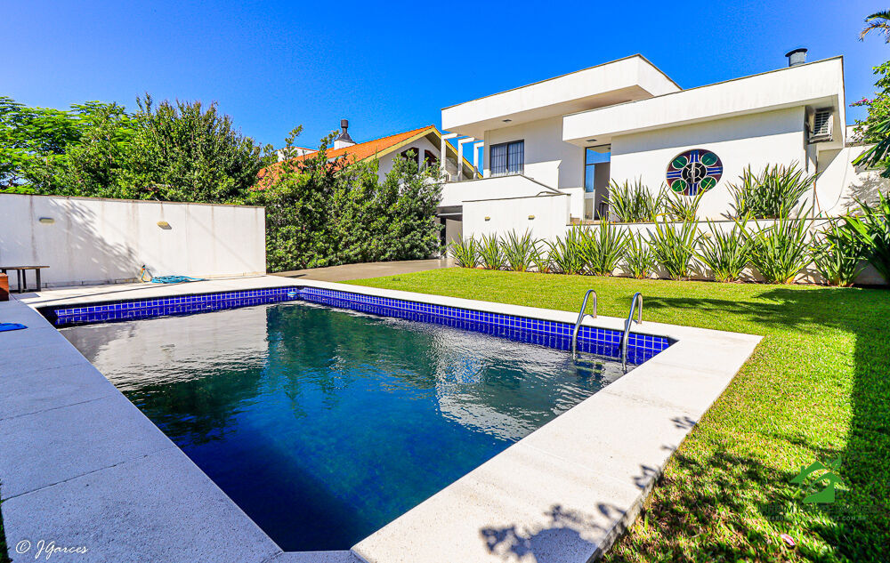 No exterior, a casa encanta com um amplo jardim frontal, piscina de alvenaria, espaçoso pátio com churrasqueira e garagem coberta para 4 carros. Tudo isso cercado por muros que garantem mais privacidade e segurança.